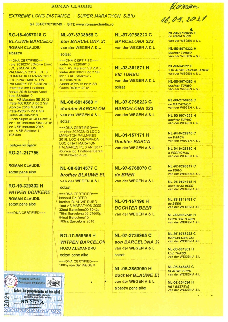 Mein Name ist Nedelcu Paul, und ich wohne in der Gemeinde Valea Călugărească, Kreis Prahova. Ich bin leidenschaftlich an der Zucht und dem Training von Marathon-Tauben interessiert – eine Tätigkeit, die mir im Laufe der Jahre große Zufriedenheit und persönliche Erfüllung gebracht hat. Leider hat mir mein beruflich anspruchsvoller Zeitplan nicht immer erlaubt, dieser Leidenschaft die nötige Zeit zu widmen.