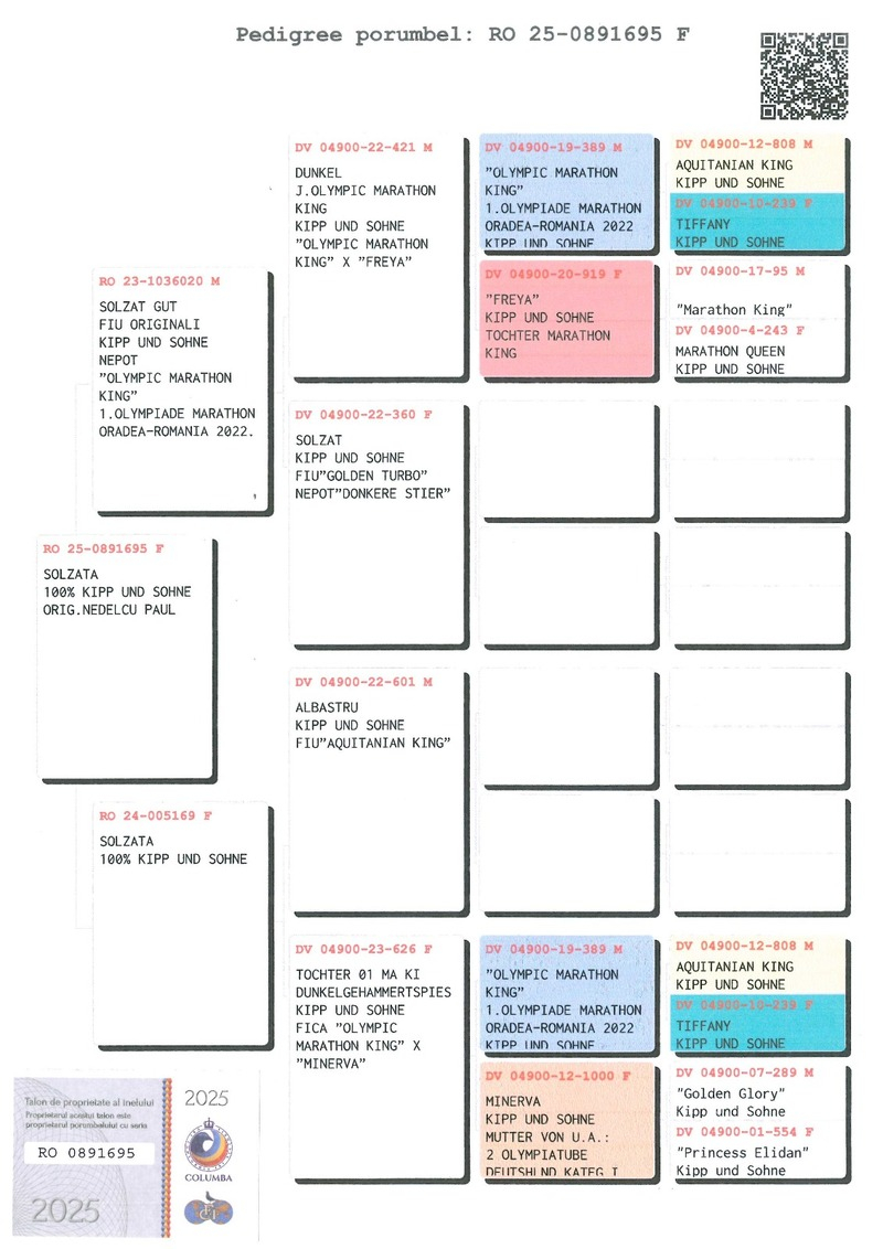 • Internationaler Versand: 250 RON (50 EUR) pro Taube, für Lieferungen außerhalb Rumäniens.