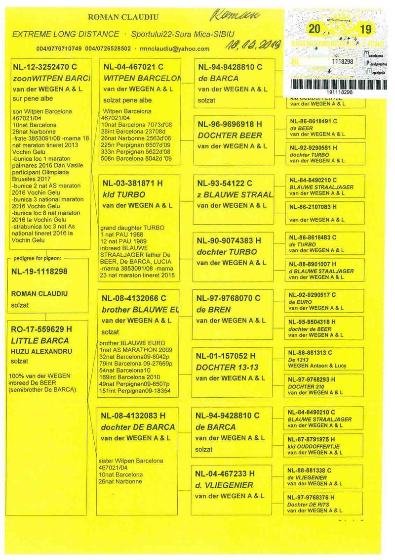 Mein Name ist Nedelcu Paul, und ich wohne in der Gemeinde Valea Călugărească, Kreis Prahova. Ich bin leidenschaftlich an der Zucht und dem Training von Marathon-Tauben interessiert – eine Tätigkeit, die mir im Laufe der Jahre große Zufriedenheit und persönliche Erfüllung gebracht hat. Leider hat mir mein beruflich anspruchsvoller Zeitplan nicht immer erlaubt, dieser Leidenschaft die nötige Zeit zu widmen.
