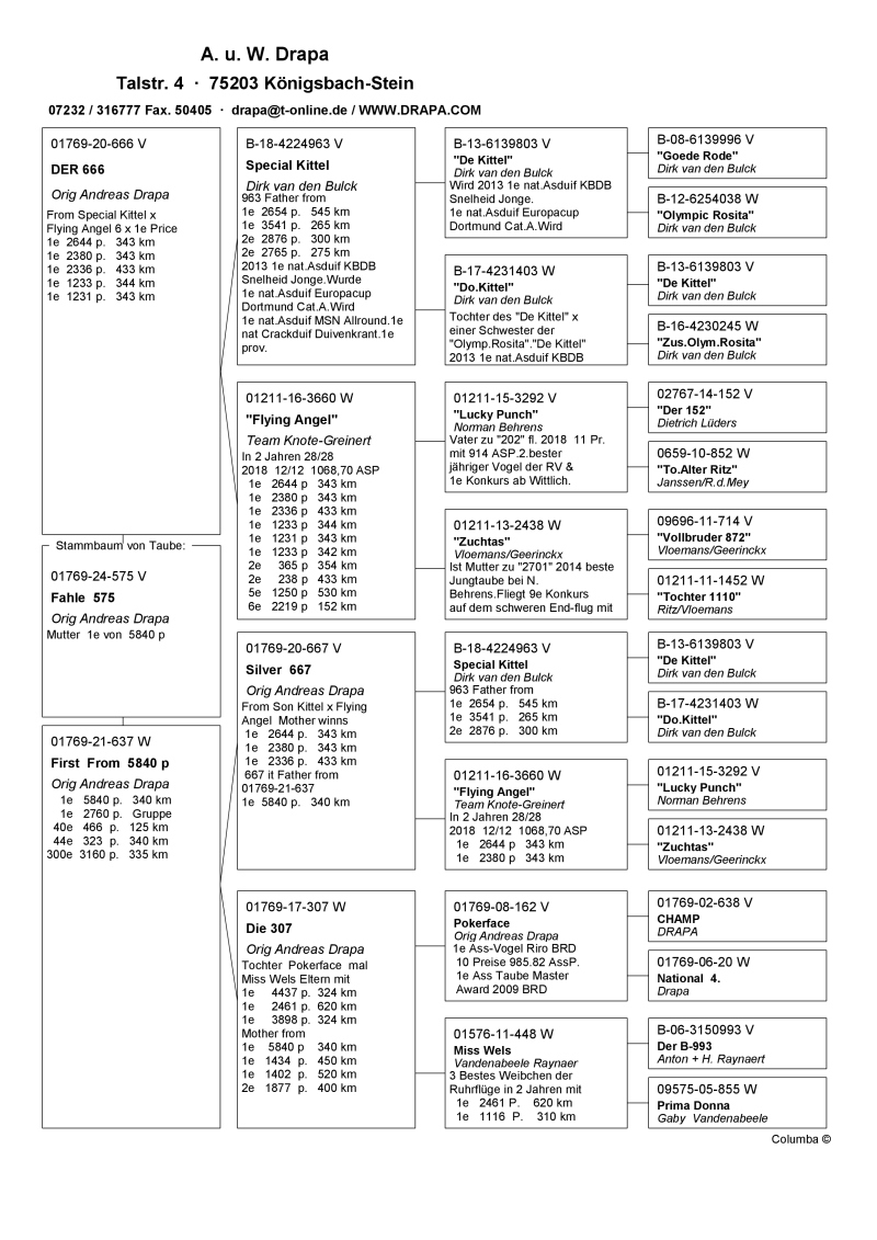 Die Tauben werden erst nach vollständiger Zahlung auf das unten angegebene Bankkonto geliefert: