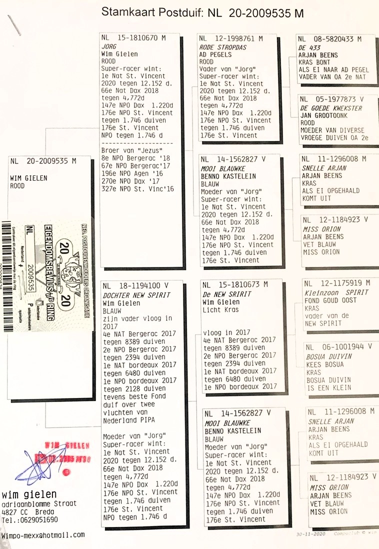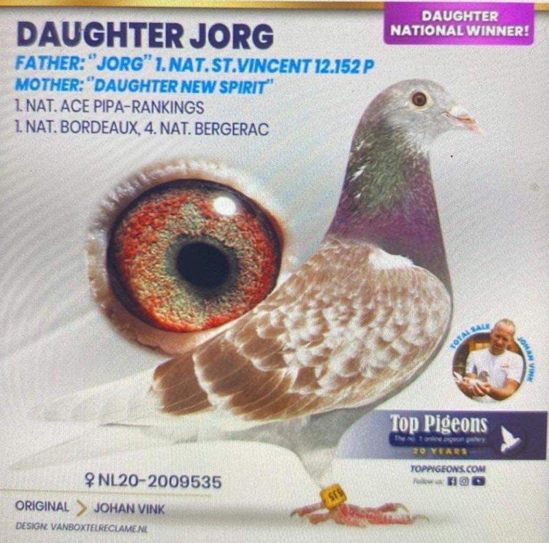Alle Tauben stammen aus etablierten Linien mit nachgewiesenem Leistungsausweis in großen Wettbewerben und stellen erstklassiges genetisches Material dar, das sorgfältig ausgewählt wurde, um zukünftige Champions in jeder Zucht zu hervorbringen.