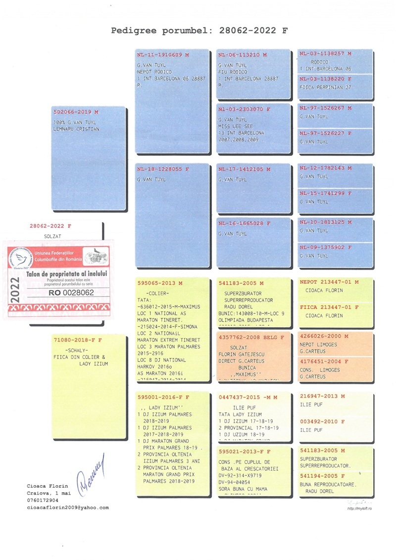• Internationaler Versand: 250 RON (50 EUR) pro Taube, für Lieferungen außerhalb Rumäniens.