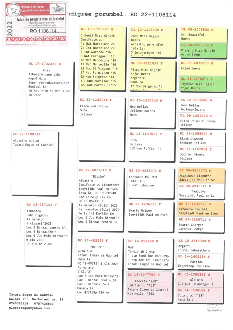 • Internationaler Versand: 250 RON (50 EUR) pro Taube, für Lieferungen außerhalb Rumäniens.