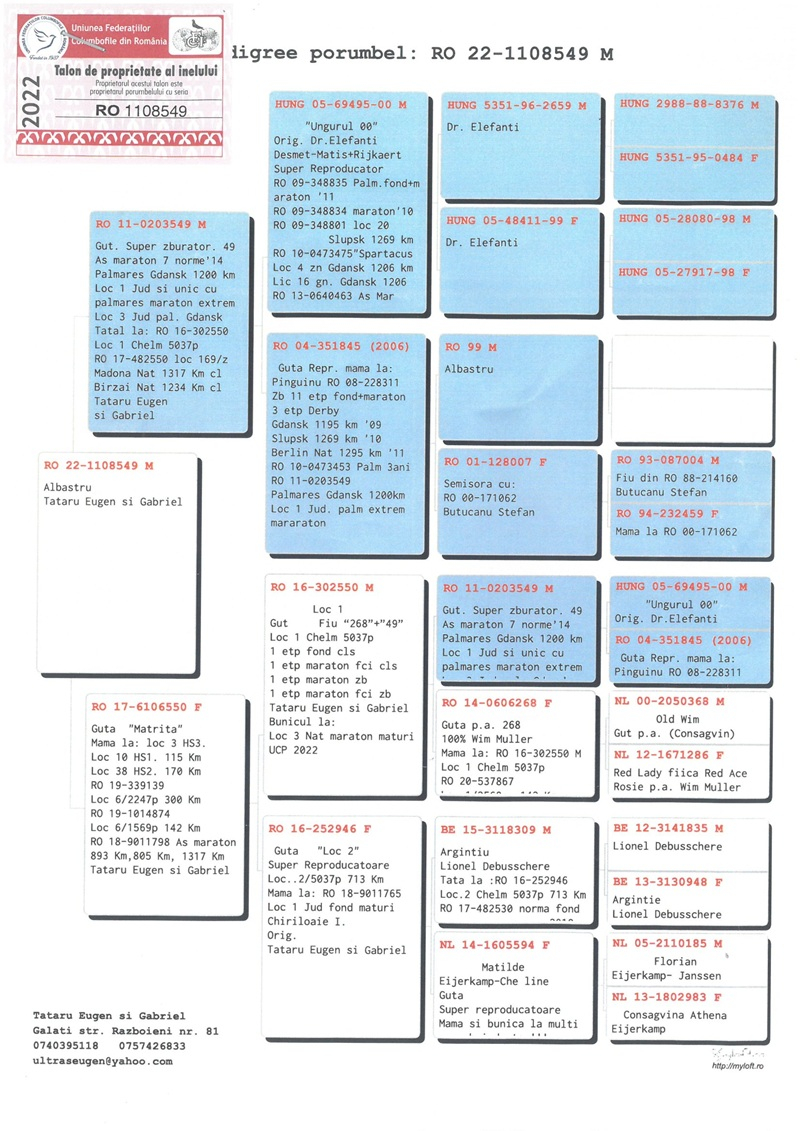 • Internationaler Versand: 250 RON (50 EUR) pro Taube, für Lieferungen außerhalb Rumäniens.