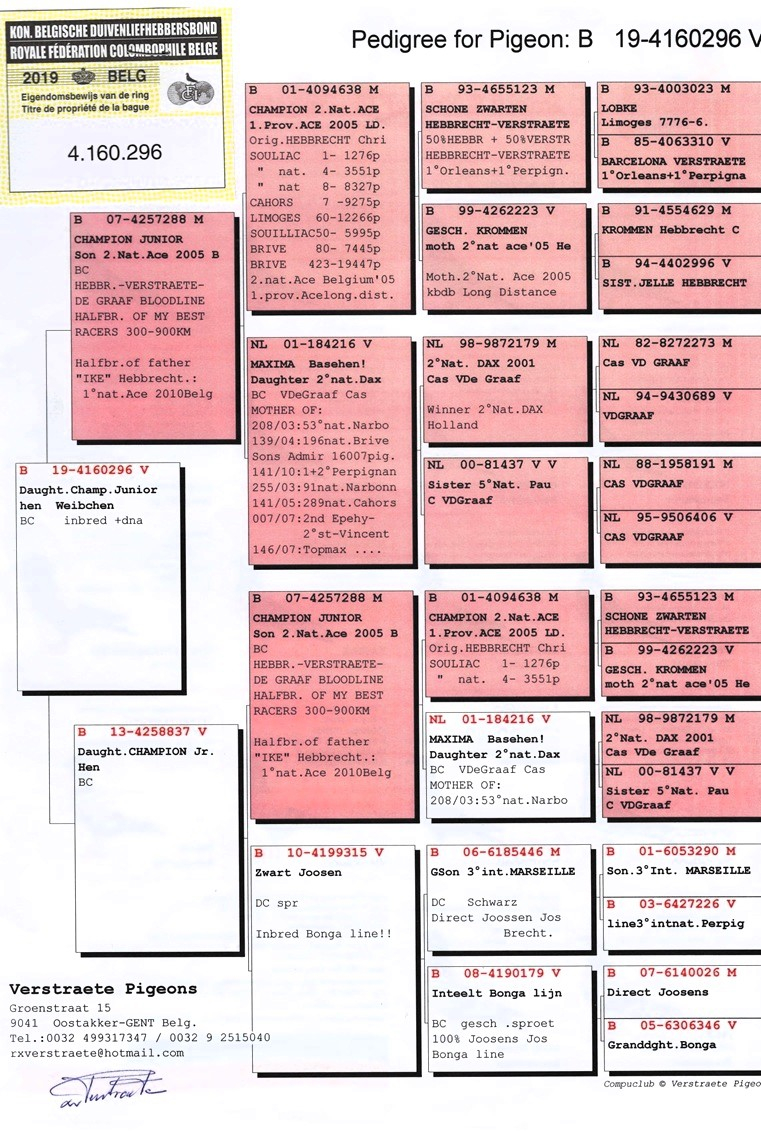 Diese Auktion stellt eine seltene und wertvolle Gelegenheit für alle Liebhaber des Brieftaubensports dar, ihre eigene Zucht mit Nachkommen aus Champion-Linien zu bereichern, die genetische Exzellenz und höchste Wettkampfleistung verkörpern.