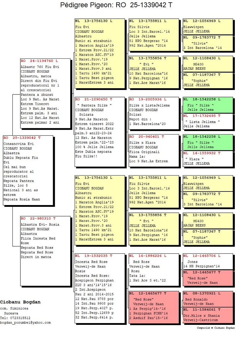 Seine nachgewiesenen Erfolge zeugen von einer professionellen und konsequenten Herangehensweise. Im Laufe der Jahre erreichte der Züchter aus Siminicea mehrfache Platzierungen in den Top 10 auf nationaler Ebene in den Kategorien Marathon und Fond, belegte den 1. Platz im Kreis Suceava bei Flügen von 800–1000 km und erzielte bemerkenswerte Ergebnisse bei schwierigen internationalen Wettbewerben in der Ukraine und Polen (z. B. Krasnodon). Die regelmäßige Teilnahme am Burdujeni–Suceava-Championat, einer der stärksten Regionen des Landes, bestätigt die Konstanz und Qualität seiner Zuchtlinie.