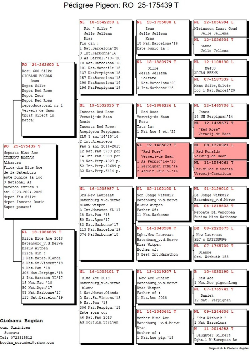 Seine nachgewiesenen Erfolge zeugen von einer professionellen und konsequenten Herangehensweise. Im Laufe der Jahre erreichte der Züchter aus Siminicea mehrfache Platzierungen in den Top 10 auf nationaler Ebene in den Kategorien Marathon und Fond, belegte den 1. Platz im Kreis Suceava bei Flügen von 800–1000 km und erzielte bemerkenswerte Ergebnisse bei schwierigen internationalen Wettbewerben in der Ukraine und Polen (z. B. Krasnodon). Die regelmäßige Teilnahme am Burdujeni–Suceava-Championat, einer der stärksten Regionen des Landes, bestätigt die Konstanz und Qualität seiner Zuchtlinie.