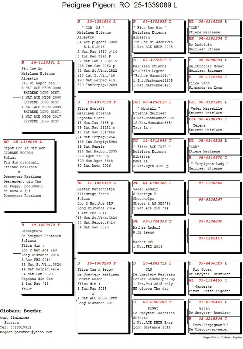 Seine nachgewiesenen Erfolge zeugen von einer professionellen und konsequenten Herangehensweise. Im Laufe der Jahre erreichte der Züchter aus Siminicea mehrfache Platzierungen in den Top 10 auf nationaler Ebene in den Kategorien Marathon und Fond, belegte den 1. Platz im Kreis Suceava bei Flügen von 800–1000 km und erzielte bemerkenswerte Ergebnisse bei schwierigen internationalen Wettbewerben in der Ukraine und Polen (z. B. Krasnodon). Die regelmäßige Teilnahme am Burdujeni–Suceava-Championat, einer der stärksten Regionen des Landes, bestätigt die Konstanz und Qualität seiner Zuchtlinie.