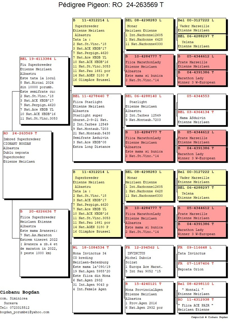 Seine nachgewiesenen Erfolge zeugen von einer professionellen und konsequenten Herangehensweise. Im Laufe der Jahre erreichte der Züchter aus Siminicea mehrfache Platzierungen in den Top 10 auf nationaler Ebene in den Kategorien Marathon und Fond, belegte den 1. Platz im Kreis Suceava bei Flügen von 800–1000 km und erzielte bemerkenswerte Ergebnisse bei schwierigen internationalen Wettbewerben in der Ukraine und Polen (z. B. Krasnodon). Die regelmäßige Teilnahme am Burdujeni–Suceava-Championat, einer der stärksten Regionen des Landes, bestätigt die Konstanz und Qualität seiner Zuchtlinie.