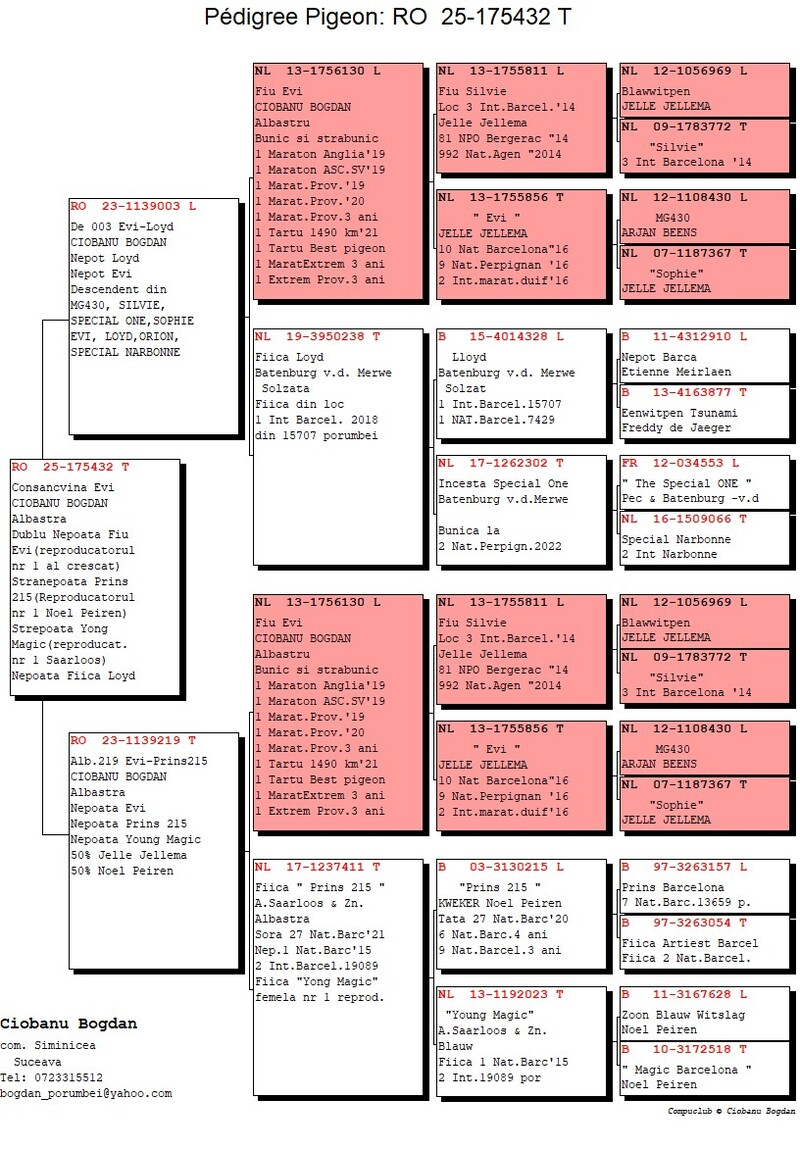 Seine nachgewiesenen Erfolge zeugen von einer professionellen und konsequenten Herangehensweise. Im Laufe der Jahre erreichte der Züchter aus Siminicea mehrfache Platzierungen in den Top 10 auf nationaler Ebene in den Kategorien Marathon und Fond, belegte den 1. Platz im Kreis Suceava bei Flügen von 800–1000 km und erzielte bemerkenswerte Ergebnisse bei schwierigen internationalen Wettbewerben in der Ukraine und Polen (z. B. Krasnodon). Die regelmäßige Teilnahme am Burdujeni–Suceava-Championat, einer der stärksten Regionen des Landes, bestätigt die Konstanz und Qualität seiner Zuchtlinie.