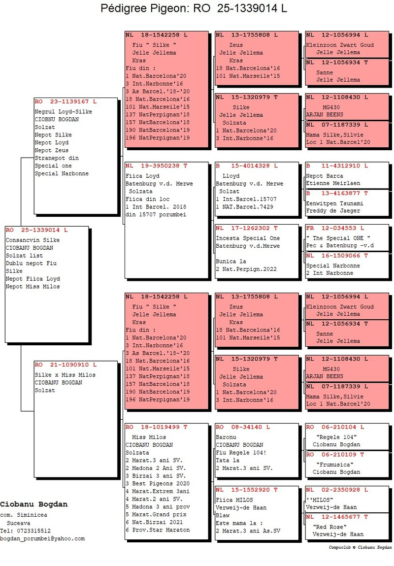 Seine nachgewiesenen Erfolge zeugen von einer professionellen und konsequenten Herangehensweise. Im Laufe der Jahre erreichte der Züchter aus Siminicea mehrfache Platzierungen in den Top 10 auf nationaler Ebene in den Kategorien Marathon und Fond, belegte den 1. Platz im Kreis Suceava bei Flügen von 800–1000 km und erzielte bemerkenswerte Ergebnisse bei schwierigen internationalen Wettbewerben in der Ukraine und Polen (z. B. Krasnodon). Die regelmäßige Teilnahme am Burdujeni–Suceava-Championat, einer der stärksten Regionen des Landes, bestätigt die Konstanz und Qualität seiner Zuchtlinie.