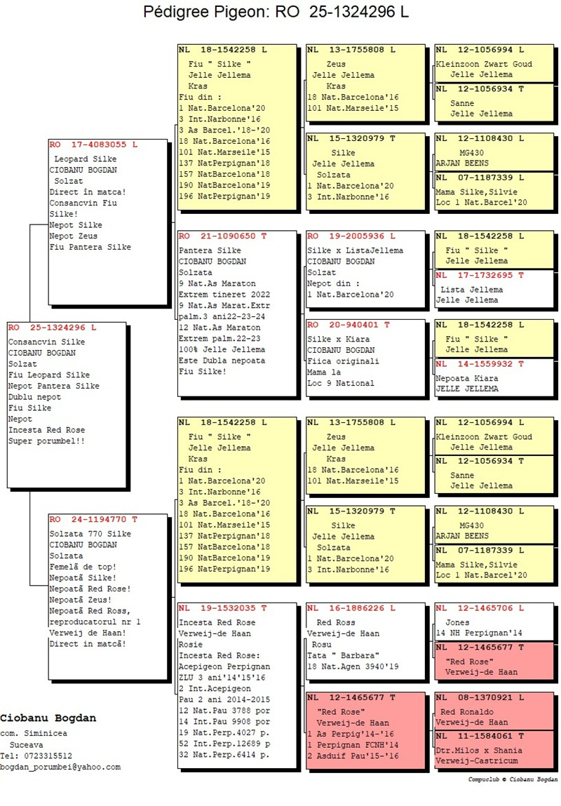 Seine nachgewiesenen Erfolge zeugen von einer professionellen und konsequenten Herangehensweise. Im Laufe der Jahre erreichte der Züchter aus Siminicea mehrfache Platzierungen in den Top 10 auf nationaler Ebene in den Kategorien Marathon und Fond, belegte den 1. Platz im Kreis Suceava bei Flügen von 800–1000 km und erzielte bemerkenswerte Ergebnisse bei schwierigen internationalen Wettbewerben in der Ukraine und Polen (z. B. Krasnodon). Die regelmäßige Teilnahme am Burdujeni–Suceava-Championat, einer der stärksten Regionen des Landes, bestätigt die Konstanz und Qualität seiner Zuchtlinie.