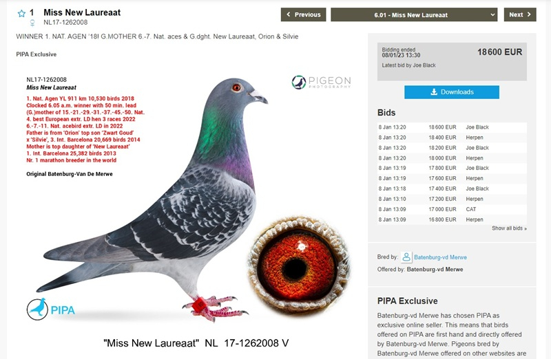 Während des Transports gelten die Tauben als Eigentum des Kuriers, der direkt für ihr Wohlbefinden verantwortlich ist. Wenn eine Taube nicht den klinischen Standards entspricht (krank oder schwach ist), ist der Kurier verpflichtet, die Abholung beim Verkäufer zu verweigern und sofort die Leitung der Auktionsseite zu informieren. Jegliche Probleme, die durch den Kurier verursacht werden, gehen zu seinen Lasten.