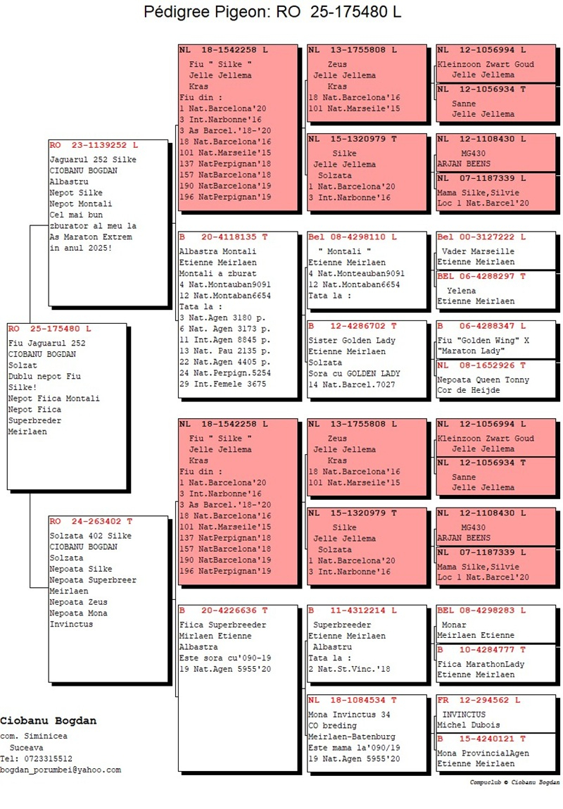 Seine nachgewiesenen Erfolge zeugen von einer professionellen und konsequenten Herangehensweise. Im Laufe der Jahre erreichte der Züchter aus Siminicea mehrfache Platzierungen in den Top 10 auf nationaler Ebene in den Kategorien Marathon und Fond, belegte den 1. Platz im Kreis Suceava bei Flügen von 800–1000 km und erzielte bemerkenswerte Ergebnisse bei schwierigen internationalen Wettbewerben in der Ukraine und Polen (z. B. Krasnodon). Die regelmäßige Teilnahme am Burdujeni–Suceava-Championat, einer der stärksten Regionen des Landes, bestätigt die Konstanz und Qualität seiner Zuchtlinie.