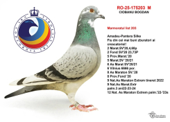 Mit Konsequenz, Strenge und echter Leidenschaft verkörpert Bogdan Ciobanu das Bild des modernen Taubenzüchters – eines Züchters, der Tradition mit Wissenschaft verbindet und durch Arbeit, Geduld und Respekt gegenüber dem Tier Höchstleistungen aufbaut. Seine Ergebnisse in den anspruchsvollsten Wettbewerben beweisen, dass Exzellenz in der Taubenzucht nicht geerbt, sondern erarbeitet wird.