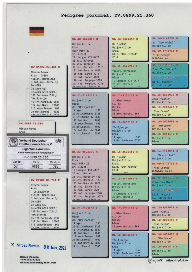 Durch Vision, Beharrlichkeit und strategische Investitionen hat Mircea Remus bewiesen, dass Exzellenz keine Grenzen kennt. Seine tiefe Leidenschaft für die Taubenzucht und der Wunsch, seine Erfahrungen mit anderen rumänischen Züchtern zu teilen, machen ihn zu einem Vorbild, Innovator und wahren Botschafter des rumänischen Taubensports in Europa.