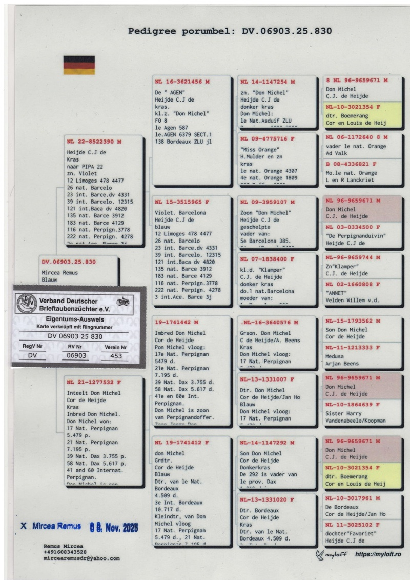 Heute bietet Mircea Remus erstmals rumänischen Züchtern die Möglichkeit, direkte Nachkommen einiger der renommiertesten europäischen Linien zu erwerben, darunter Tauben von Cor de Heijde und Verweij & Peter de Haan. Diese Initiative stellt eine seltene Gelegenheit dar, Spitzen-Genetik zu erwerben und die eigenen Zuchtprogramme auf europäisches Wettbewerbsniveau zu heben.