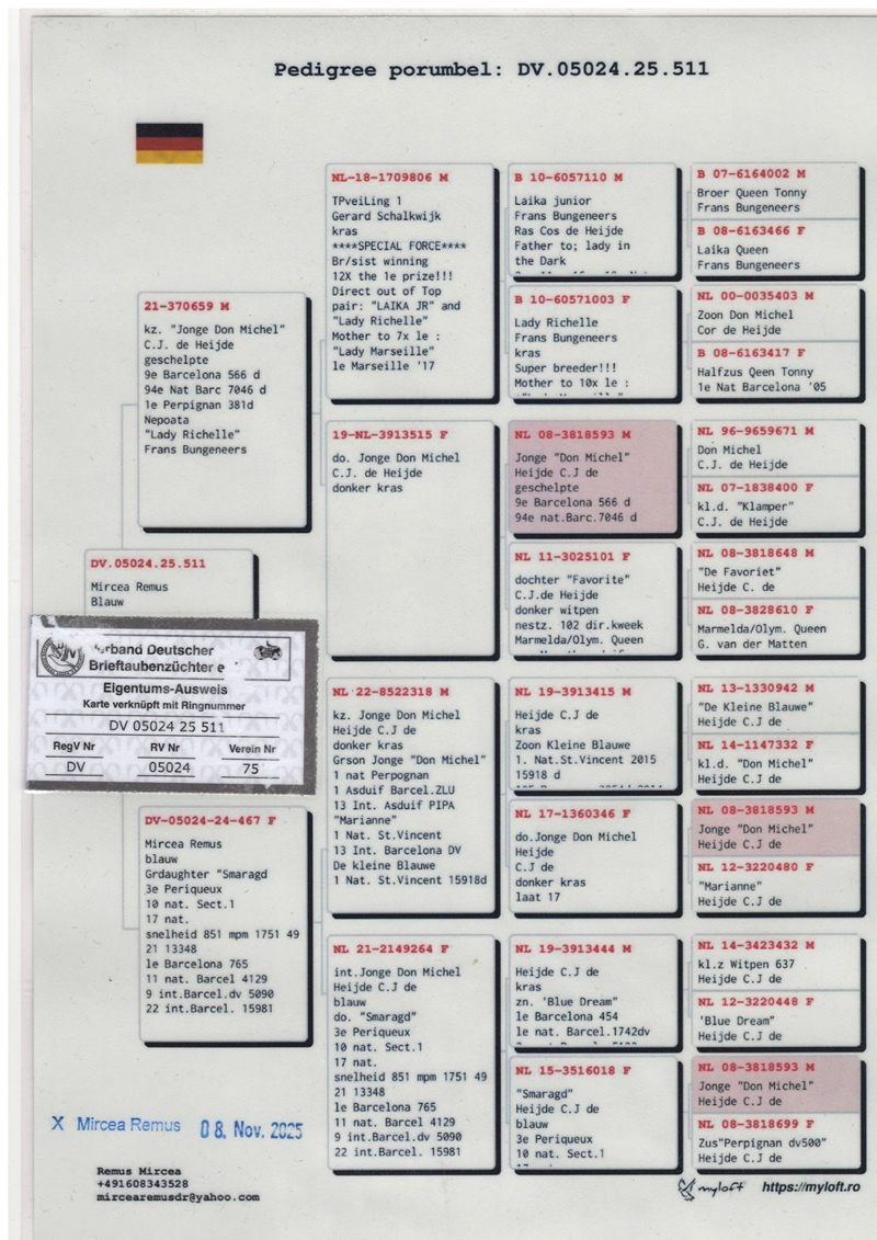 Heute bietet Mircea Remus erstmals rumänischen Züchtern die Möglichkeit, direkte Nachkommen einiger der renommiertesten europäischen Linien zu erwerben, darunter Tauben von Cor de Heijde und Verweij & Peter de Haan. Diese Initiative stellt eine seltene Gelegenheit dar, Spitzen-Genetik zu erwerben und die eigenen Zuchtprogramme auf europäisches Wettbewerbsniveau zu heben.