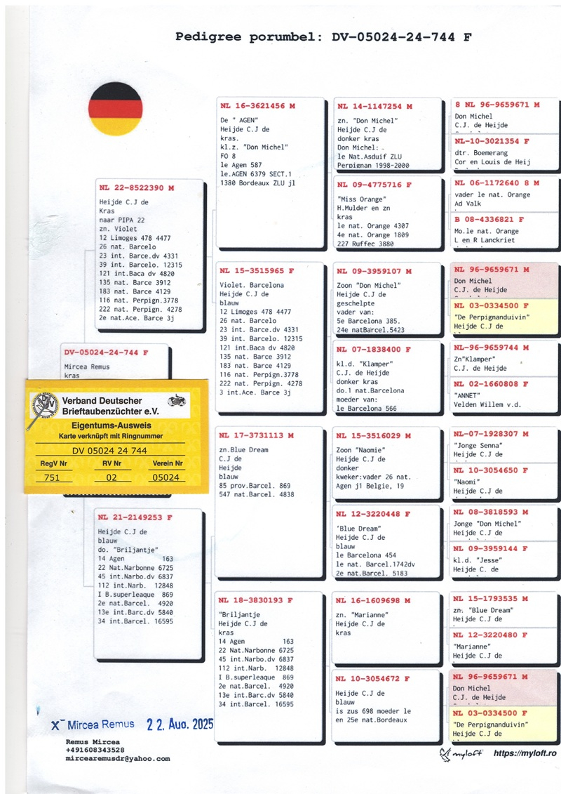 Heute bietet Mircea Remus erstmals rumänischen Züchtern die Möglichkeit, direkte Nachkommen einiger der renommiertesten europäischen Linien zu erwerben, darunter Tauben von Cor de Heijde und Verweij & Peter de Haan. Diese Initiative stellt eine seltene Gelegenheit dar, Spitzen-Genetik zu erwerben und die eigenen Zuchtprogramme auf europäisches Wettbewerbsniveau zu heben.