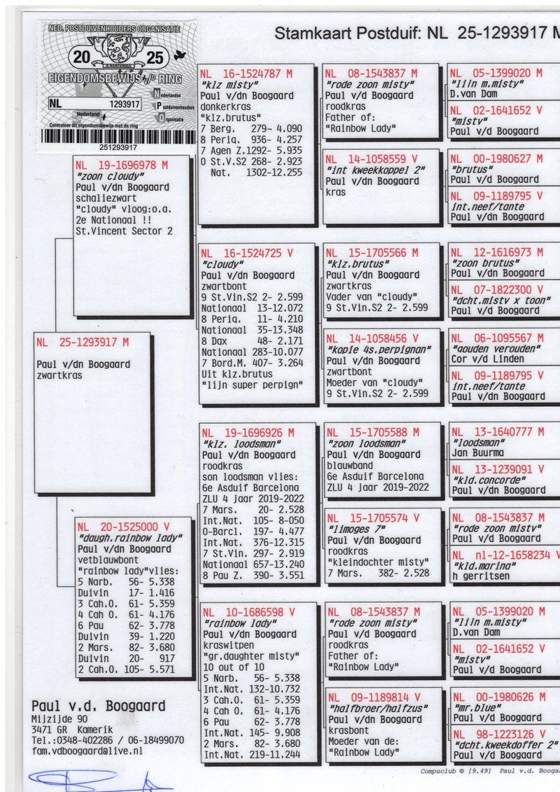 Obwohl er eine relativ kleine Taubengruppe besitzt, setzt Paul van den Boogaard in der Regel nicht mehr als fünf Tauben in jedem nationalen Wettbewerb ein. Trotzdem erreichte er im Jahr 2021 eine bemerkenswerte Leistung, als er das internationale Rennen von St. Vincent gewann. Dieser Erfolg festigte nicht nur seinen Ruf, sondern unterstrich auch seine Expertise in hochrangigen Wettbewerben und zeigte das Können, das er im Laufe seiner jahrzehntelangen Tätigkeit im Taubensport erworben hat.