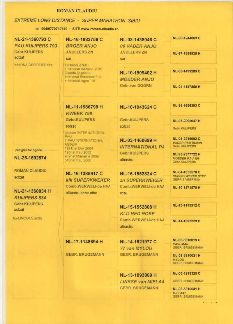 Aktiv auf angesehenen Plattformen wie Pigeoncom und Voiajor.net, arbeitet Roman Claudiu eng mit führenden Züchtern aus Belgien und den Niederlanden zusammen und festigt damit seine Position in der europäischen Taubenzuchtselitenklasse. Sein modernes Schlagsystem ist mit dem Benzing M1-System ausgestattet und basiert auf einer fortschrittlichen Selektionsstrategie, die Flugleistung mit kontrollierter Inzucht kombiniert, um die genetische Qualität zu optimieren.