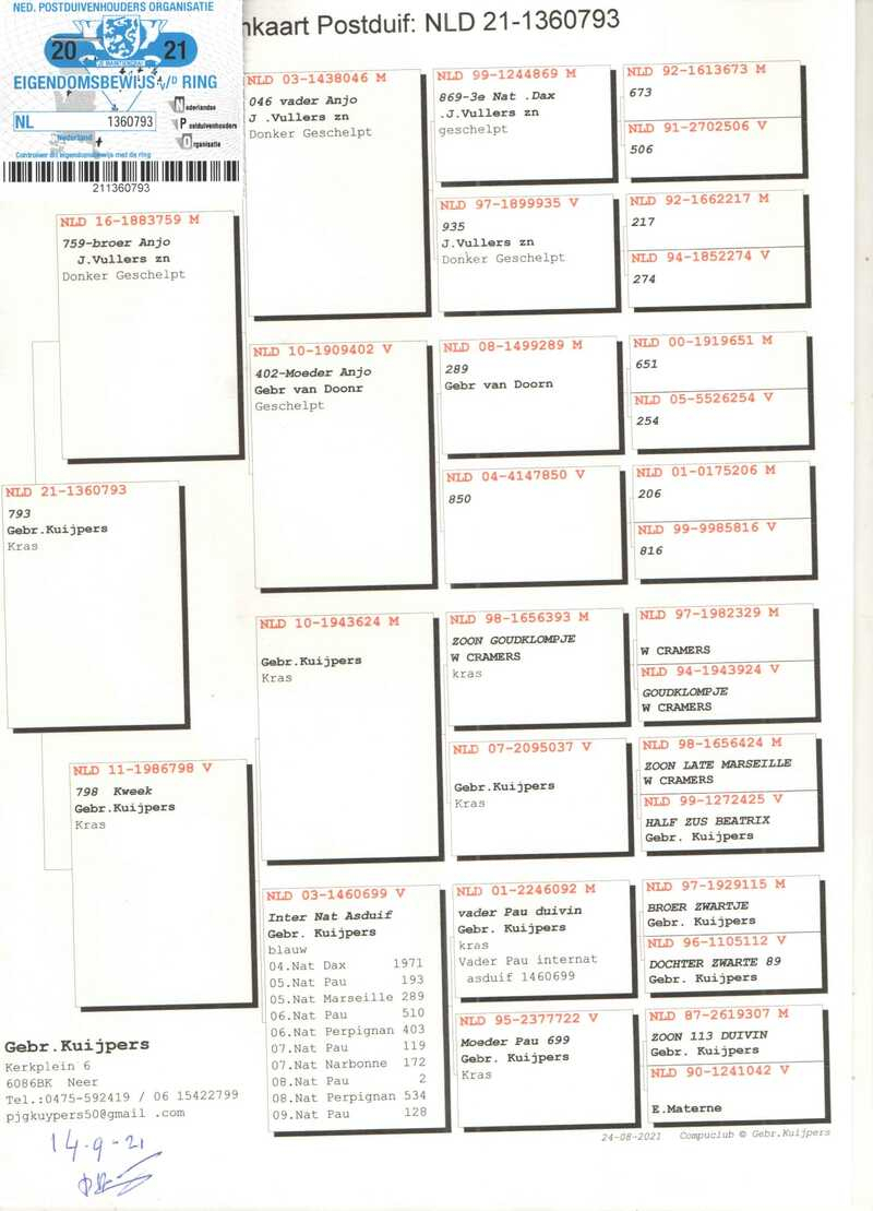 Diese Tauben stammen aus renommierten Blutlinien – Van der Wegen, De Heijde, Hagens und Belleter – Linien aus Vögeln mit nachgewiesenen Leistungen, sorgfältig ausgewählt, im Flug getestet und vorbereitet für die Elite-Marathons der kommenden Saisons (Bordeaux 2025, Barcelona 2026).