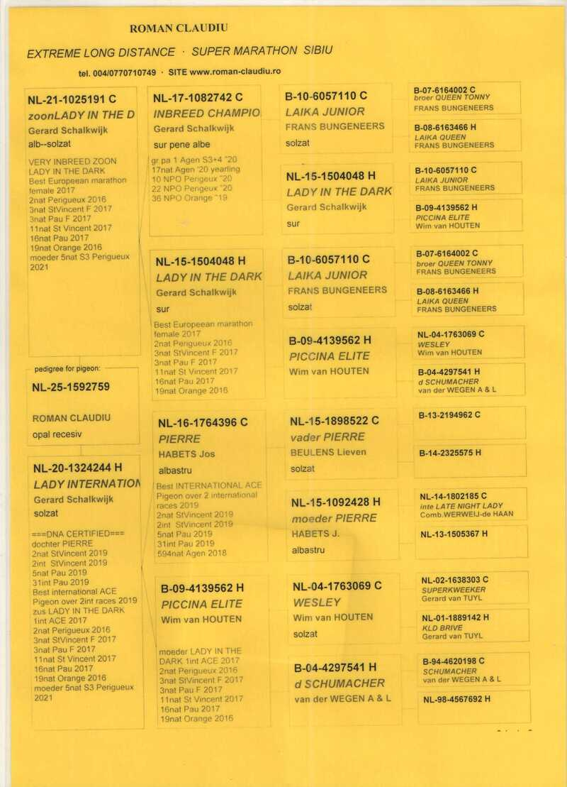 Aktiv auf angesehenen Plattformen wie Pigeoncom und Voiajor.net, arbeitet Roman Claudiu eng mit führenden Züchtern aus Belgien und den Niederlanden zusammen und festigt damit seine Position in der europäischen Taubenzuchtselitenklasse. Sein modernes Schlagsystem ist mit dem Benzing M1-System ausgestattet und basiert auf einer fortschrittlichen Selektionsstrategie, die Flugleistung mit kontrollierter Inzucht kombiniert, um die genetische Qualität zu optimieren.
