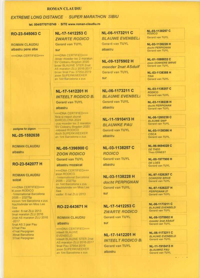 Aktiv auf angesehenen Plattformen wie Pigeoncom und Voiajor.net, arbeitet Roman Claudiu eng mit führenden Züchtern aus Belgien und den Niederlanden zusammen und festigt damit seine Position in der europäischen Taubenzuchtselitenklasse. Sein modernes Schlagsystem ist mit dem Benzing M1-System ausgestattet und basiert auf einer fortschrittlichen Selektionsstrategie, die Flugleistung mit kontrollierter Inzucht kombiniert, um die genetische Qualität zu optimieren.