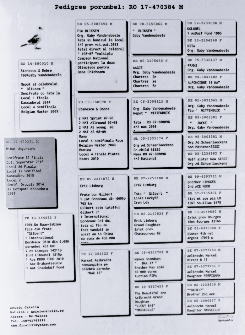 Durch kluge Zukäufe von renommierten rumänischen Züchtern – darunter Stănescu & Dobre, Cosmin Olteanu und Cătălin Ariciu – gelang es Ungureanu, eine solide genetische Basis aufzubauen, auf der er seinen Aufstieg in die Elite des lokalen, regionalen und nationalen Brieftaubensports gründete.