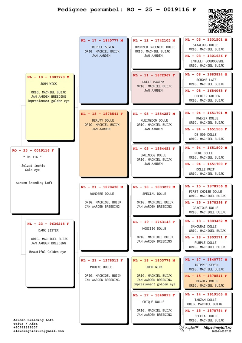 Aarden Breeding Loft Rumänien, gelegen im Kreis Alba, hebt sich als bemerkenswerter Maßstab in Osteuropa hervor, mit dem Hauptziel, die außergewöhnlichen Eigenschaften der Jan-Aarden-Tauben zu bewahren und zu fördern. Gegründet vor einigen Jahren, beherbergt dieses Zentrum Elite-Exemplare von Aarden-Tauben, die von Machiel Buijk stammen, dem weltweit anerkannten bedeutendsten Züchter dieser Taubenfamilie. Die Nachkommen dieser Vögel haben beeindruckende Siege in hoch anspruchsvollen Marathonwettbewerben errungen und tragen das genetische Erbe der berühmten Taube Dolle, die in fast jedem Stammbaum vertreten ist.