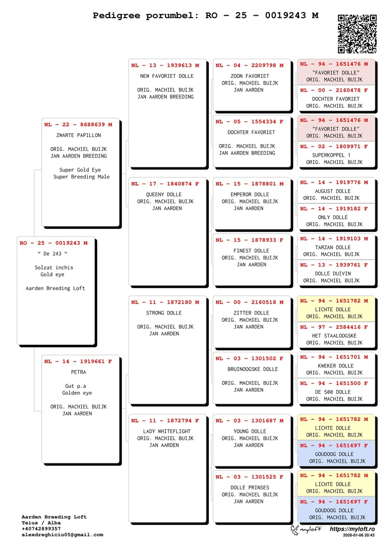 Aarden Breeding Loft Rumänien, gelegen im Kreis Alba, hebt sich als bemerkenswerter Maßstab in Osteuropa hervor, mit dem Hauptziel, die außergewöhnlichen Eigenschaften der Jan-Aarden-Tauben zu bewahren und zu fördern. Gegründet vor einigen Jahren, beherbergt dieses Zentrum Elite-Exemplare von Aarden-Tauben, die von Machiel Buijk stammen, dem weltweit anerkannten bedeutendsten Züchter dieser Taubenfamilie. Die Nachkommen dieser Vögel haben beeindruckende Siege in hoch anspruchsvollen Marathonwettbewerben errungen und tragen das genetische Erbe der berühmten Taube Dolle, die in fast jedem Stammbaum vertreten ist.