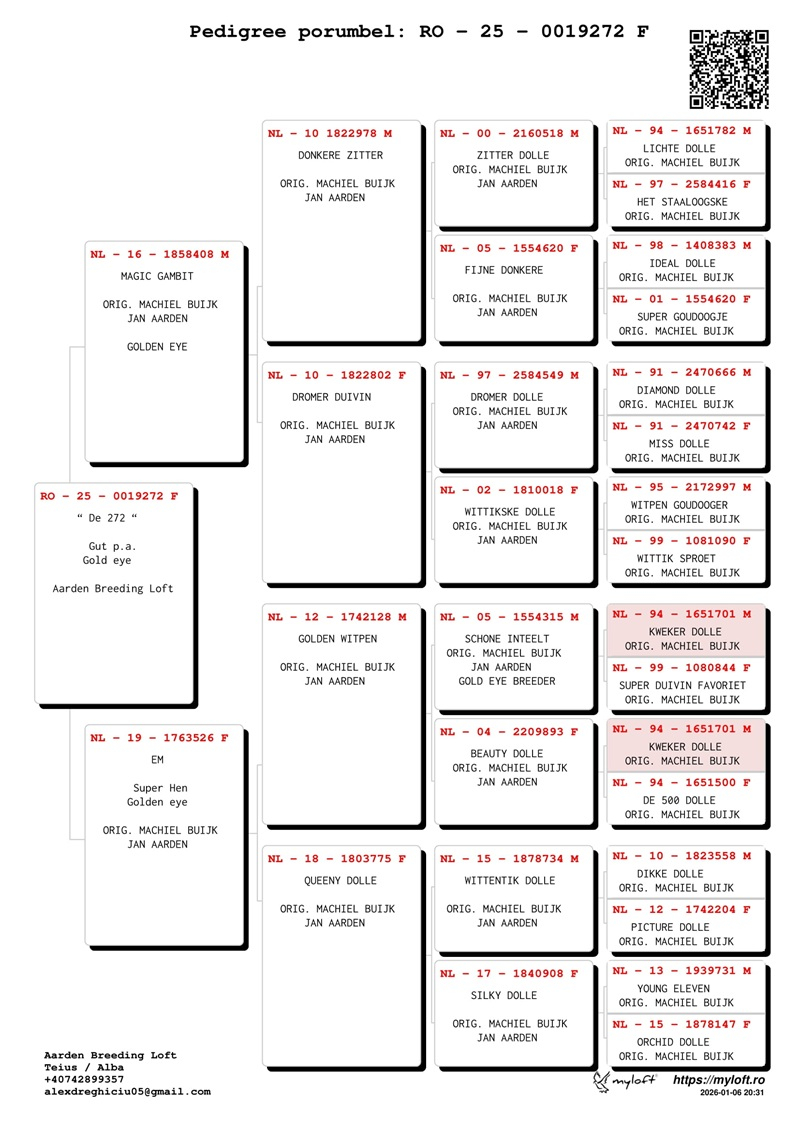 Aarden Breeding Loft Rumänien, gelegen im Kreis Alba, hebt sich als bemerkenswerter Maßstab in Osteuropa hervor, mit dem Hauptziel, die außergewöhnlichen Eigenschaften der Jan-Aarden-Tauben zu bewahren und zu fördern. Gegründet vor einigen Jahren, beherbergt dieses Zentrum Elite-Exemplare von Aarden-Tauben, die von Machiel Buijk stammen, dem weltweit anerkannten bedeutendsten Züchter dieser Taubenfamilie. Die Nachkommen dieser Vögel haben beeindruckende Siege in hoch anspruchsvollen Marathonwettbewerben errungen und tragen das genetische Erbe der berühmten Taube Dolle, die in fast jedem Stammbaum vertreten ist.