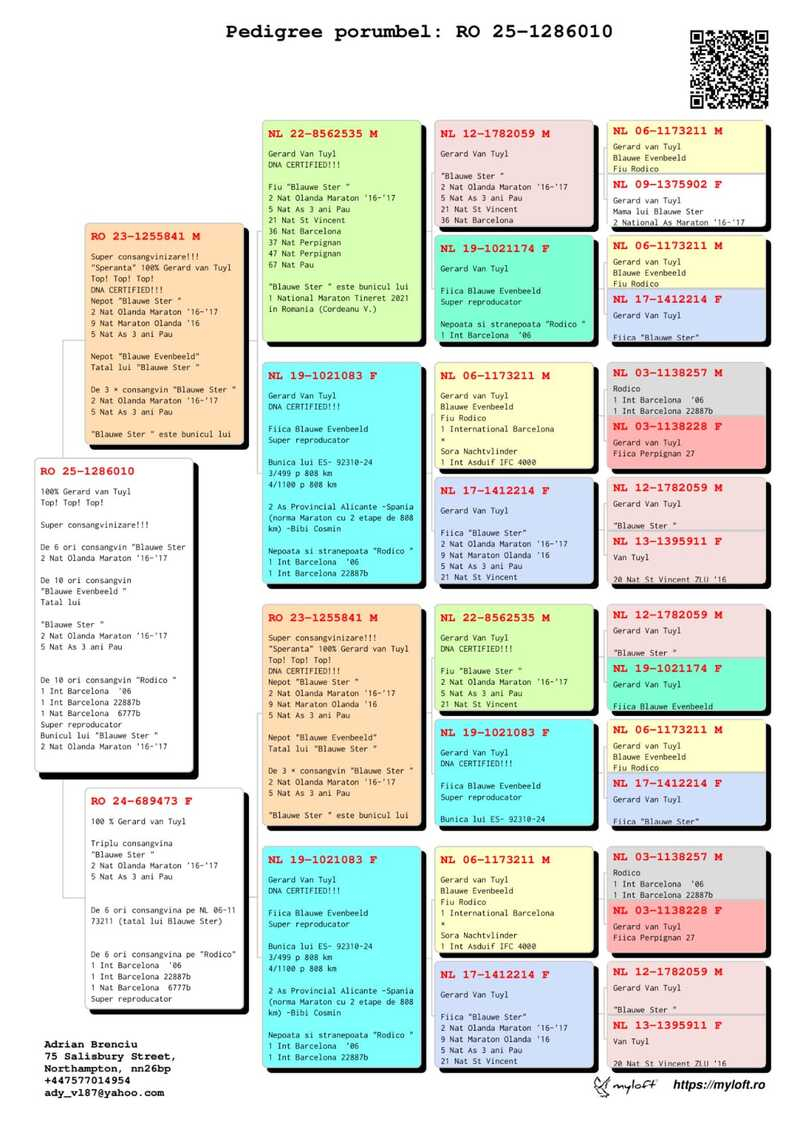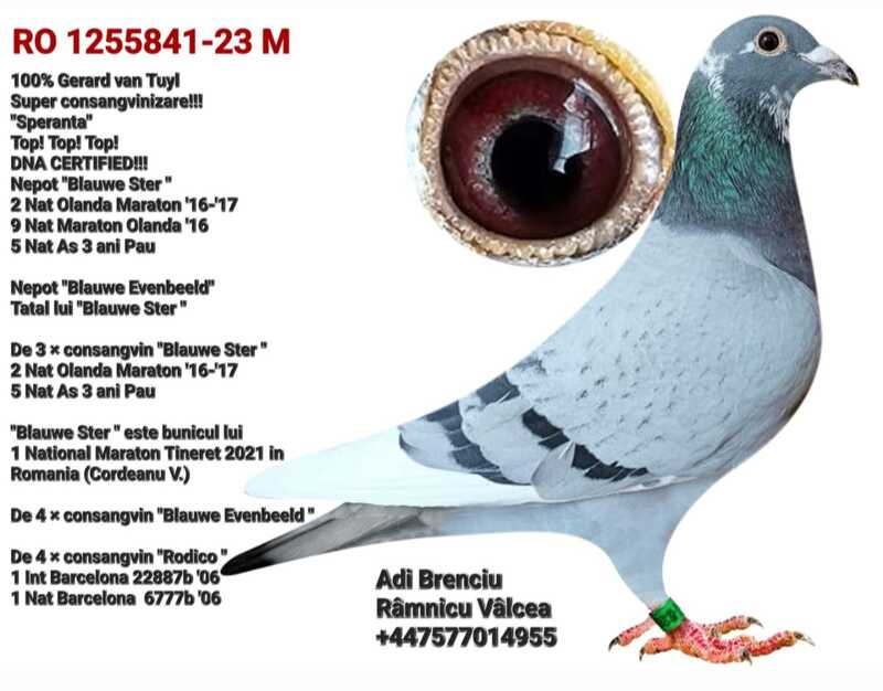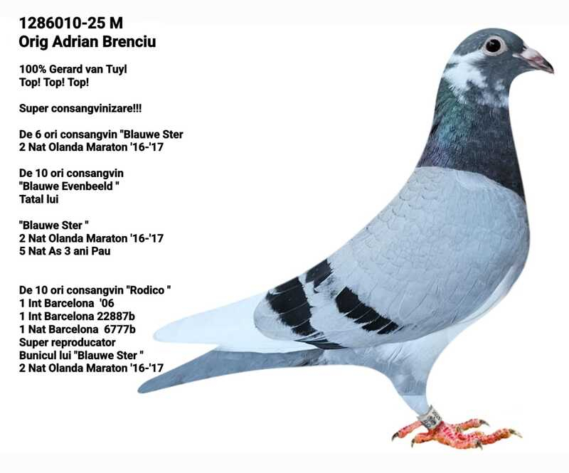 In den letzten Jahren hat sich Adrian Brenciu durch seine professionelle Herangehensweise ausgezeichnet: eine präzise Auswahl der Zuchttauben, stetige Sorge um Gesundheit und Vitalität seiner Tiere sowie eine wohlüberlegte Teilnahme an Langstreckenrennen. Seine Tauben werden in einer ausgewogenen Umgebung aufgezogen, mit Schwerpunkt auf Robustheit, Heimfindungsinstinkt, Erholungsfähigkeit und Ausdauer – Eigenschaften, die für den Erfolg im Marathon unerlässlich sind.