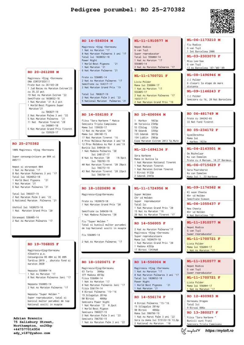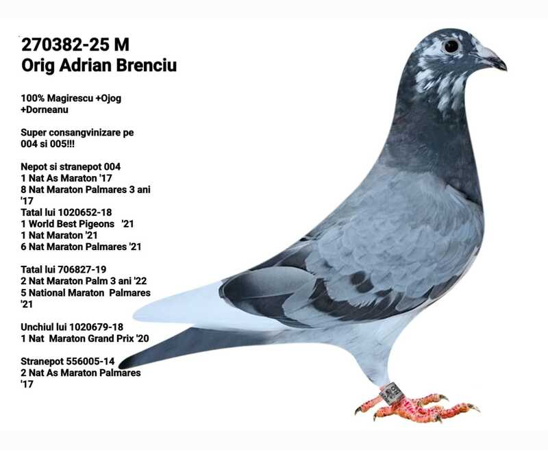 In den letzten Jahren hat sich Adrian Brenciu durch seine professionelle Herangehensweise ausgezeichnet: eine präzise Auswahl der Zuchttauben, stetige Sorge um Gesundheit und Vitalität seiner Tiere sowie eine wohlüberlegte Teilnahme an Langstreckenrennen. Seine Tauben werden in einer ausgewogenen Umgebung aufgezogen, mit Schwerpunkt auf Robustheit, Heimfindungsinstinkt, Erholungsfähigkeit und Ausdauer – Eigenschaften, die für den Erfolg im Marathon unerlässlich sind.