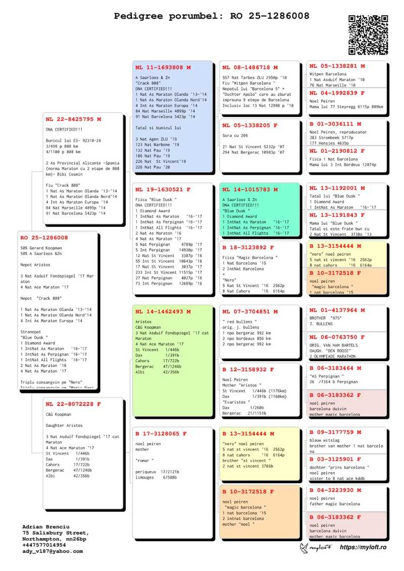 In den letzten Jahren hat sich Adrian Brenciu durch seine professionelle Herangehensweise ausgezeichnet: eine präzise Auswahl der Zuchttauben, stetige Sorge um Gesundheit und Vitalität seiner Tiere sowie eine wohlüberlegte Teilnahme an Langstreckenrennen. Seine Tauben werden in einer ausgewogenen Umgebung aufgezogen, mit Schwerpunkt auf Robustheit, Heimfindungsinstinkt, Erholungsfähigkeit und Ausdauer – Eigenschaften, die für den Erfolg im Marathon unerlässlich sind.