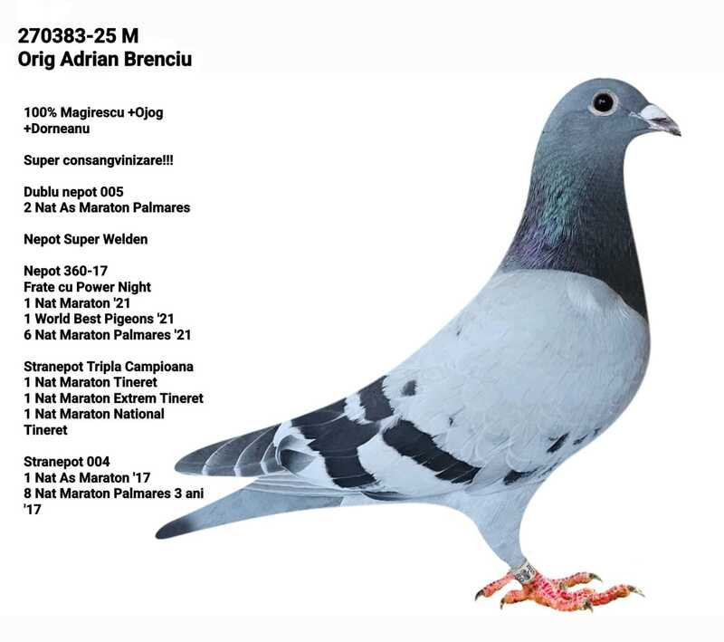 In den letzten Jahren hat sich Adrian Brenciu durch seine professionelle Herangehensweise ausgezeichnet: eine präzise Auswahl der Zuchttauben, stetige Sorge um Gesundheit und Vitalität seiner Tiere sowie eine wohlüberlegte Teilnahme an Langstreckenrennen. Seine Tauben werden in einer ausgewogenen Umgebung aufgezogen, mit Schwerpunkt auf Robustheit, Heimfindungsinstinkt, Erholungsfähigkeit und Ausdauer – Eigenschaften, die für den Erfolg im Marathon unerlässlich sind.