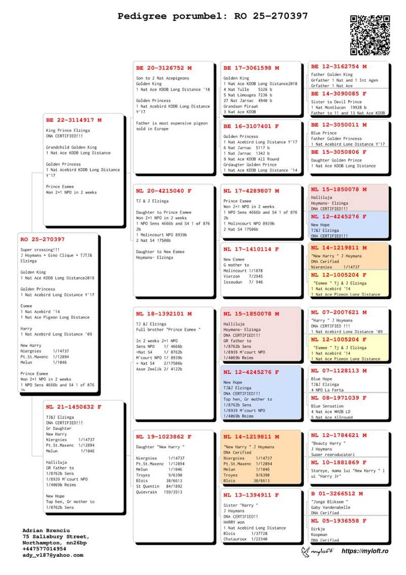 Der genetische Wert der von Adrian Brenciu gezüchteten Tauben wird auch durch die Erfolge anderer namhafter Züchter bestätigt, die seine Linien in ihre Schläge integriert haben: