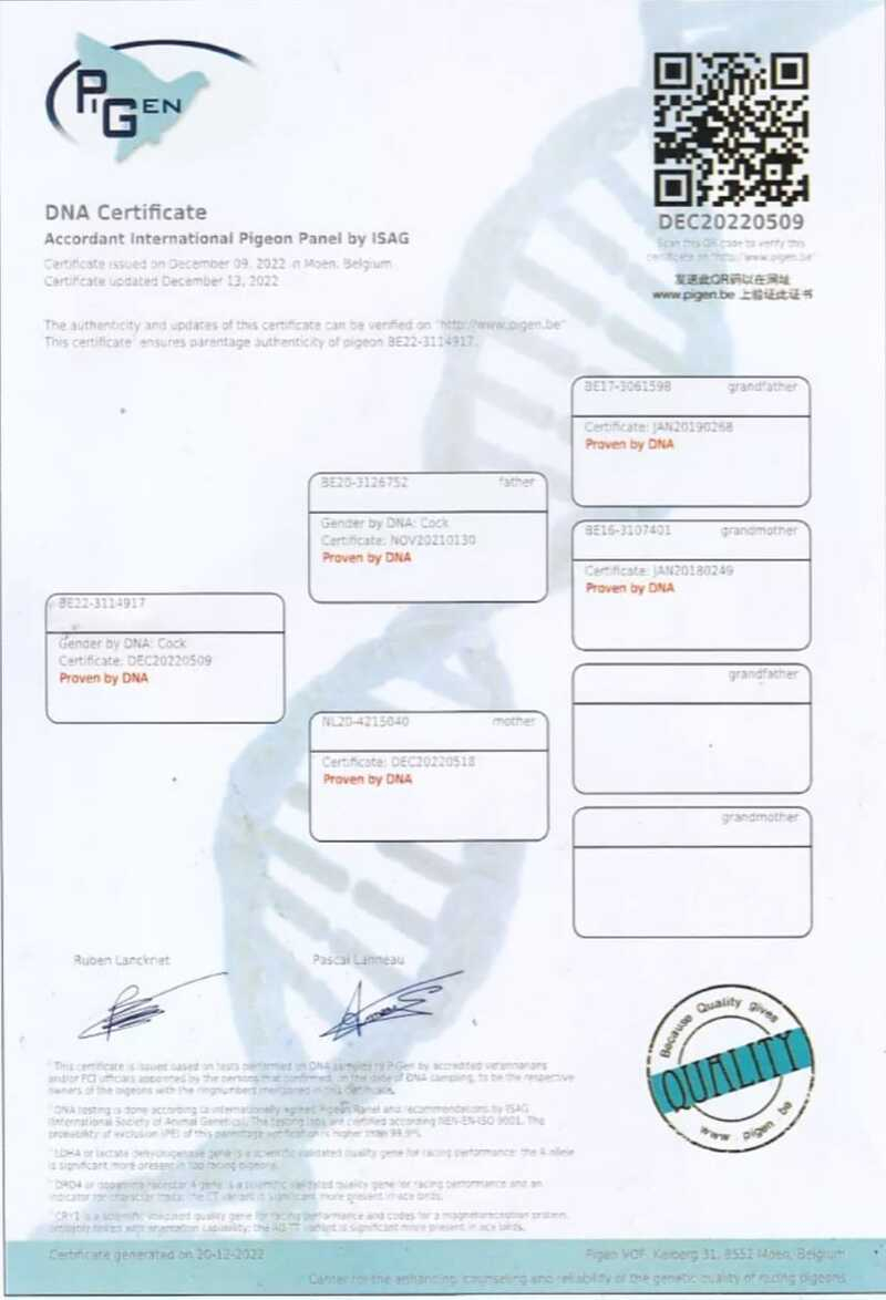 Seine Tauben erzielten außerdem hervorragende Ergebnisse bei internationalen Wettbewerben in Polen, Bulgarien und anderen europäischen Ländern, oft unter den besten Plätzen bei Tausenden von Teilnehmern.