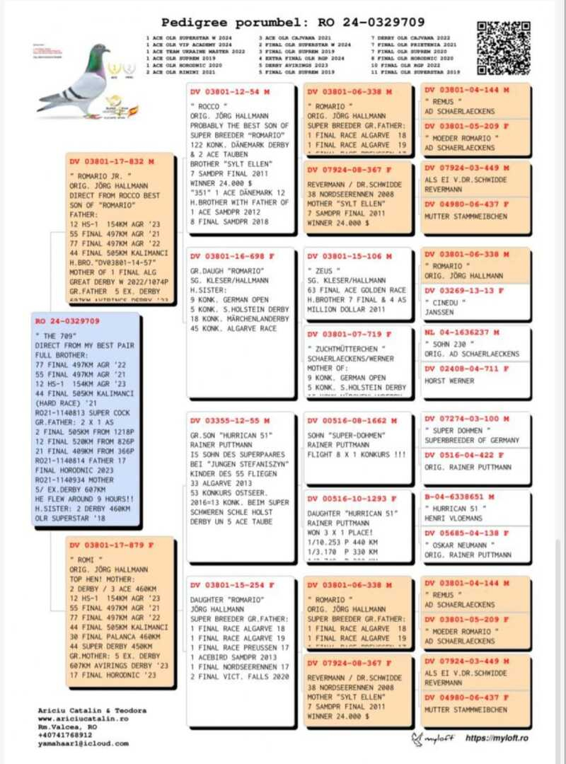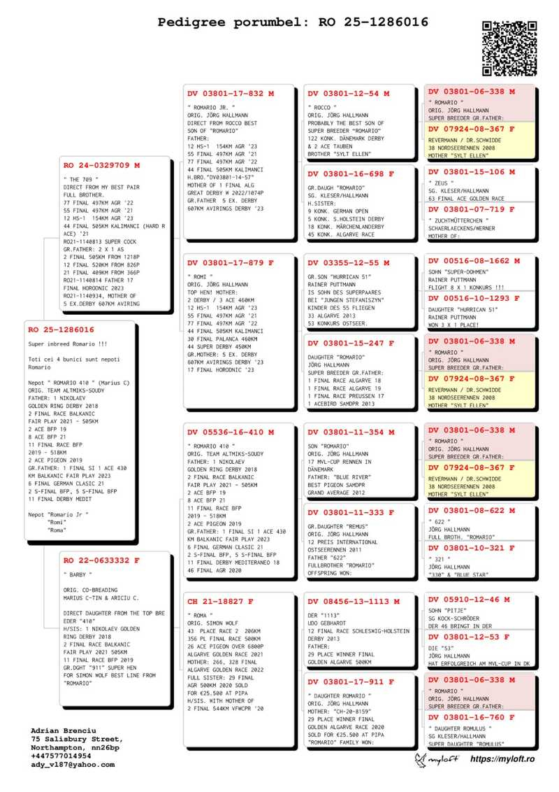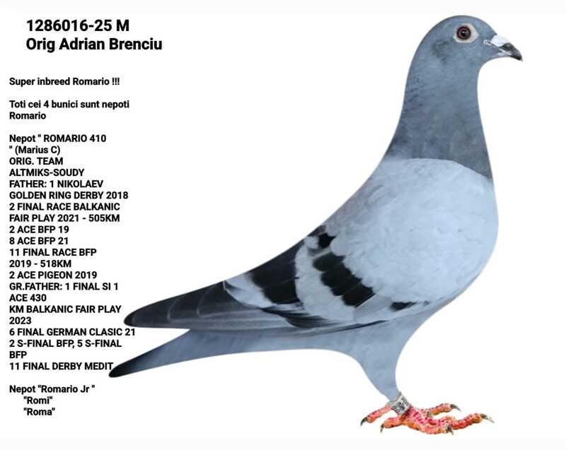 In den letzten Jahren hat sich Adrian Brenciu durch seine professionelle Herangehensweise ausgezeichnet: eine präzise Auswahl der Zuchttauben, stetige Sorge um Gesundheit und Vitalität seiner Tiere sowie eine wohlüberlegte Teilnahme an Langstreckenrennen. Seine Tauben werden in einer ausgewogenen Umgebung aufgezogen, mit Schwerpunkt auf Robustheit, Heimfindungsinstinkt, Erholungsfähigkeit und Ausdauer – Eigenschaften, die für den Erfolg im Marathon unerlässlich sind.