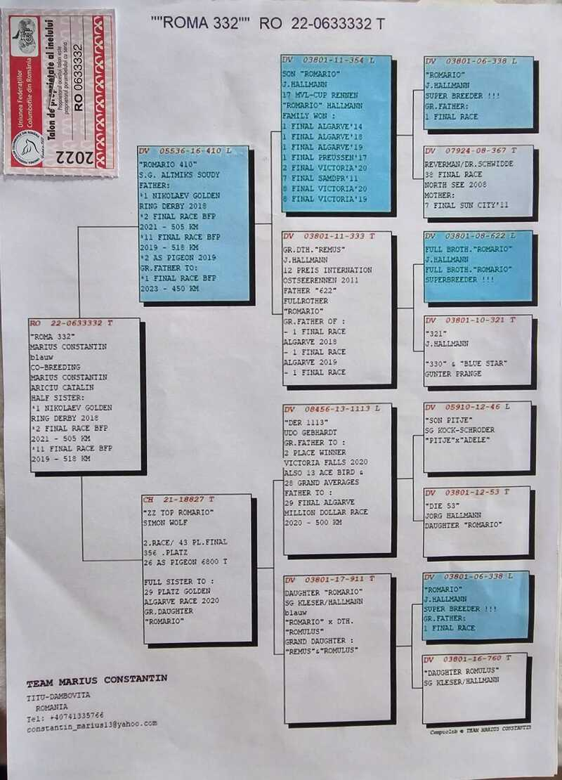 Der genetische Wert der von Adrian Brenciu gezüchteten Tauben wird auch durch die Erfolge anderer namhafter Züchter bestätigt, die seine Linien in ihre Schläge integriert haben: