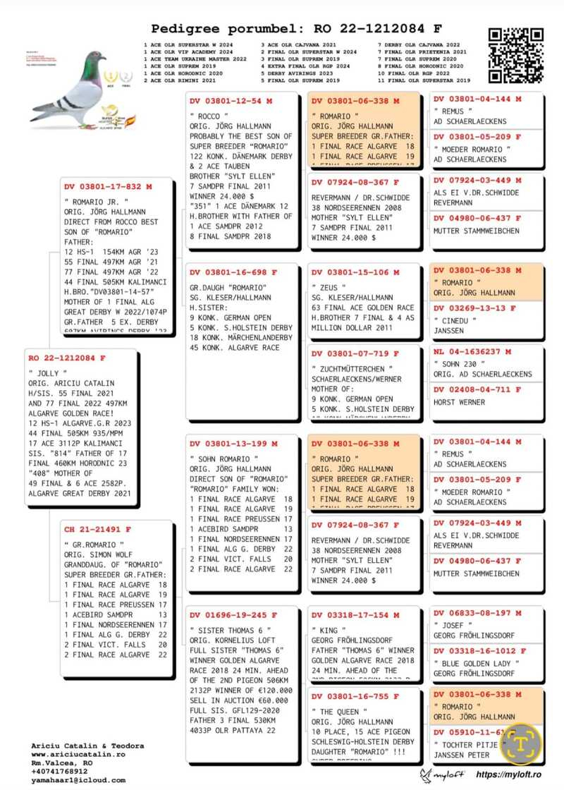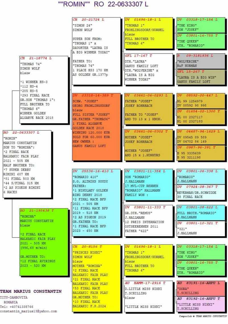 Der genetische Wert der von Adrian Brenciu gezüchteten Tauben wird auch durch die Erfolge anderer namhafter Züchter bestätigt, die seine Linien in ihre Schläge integriert haben: