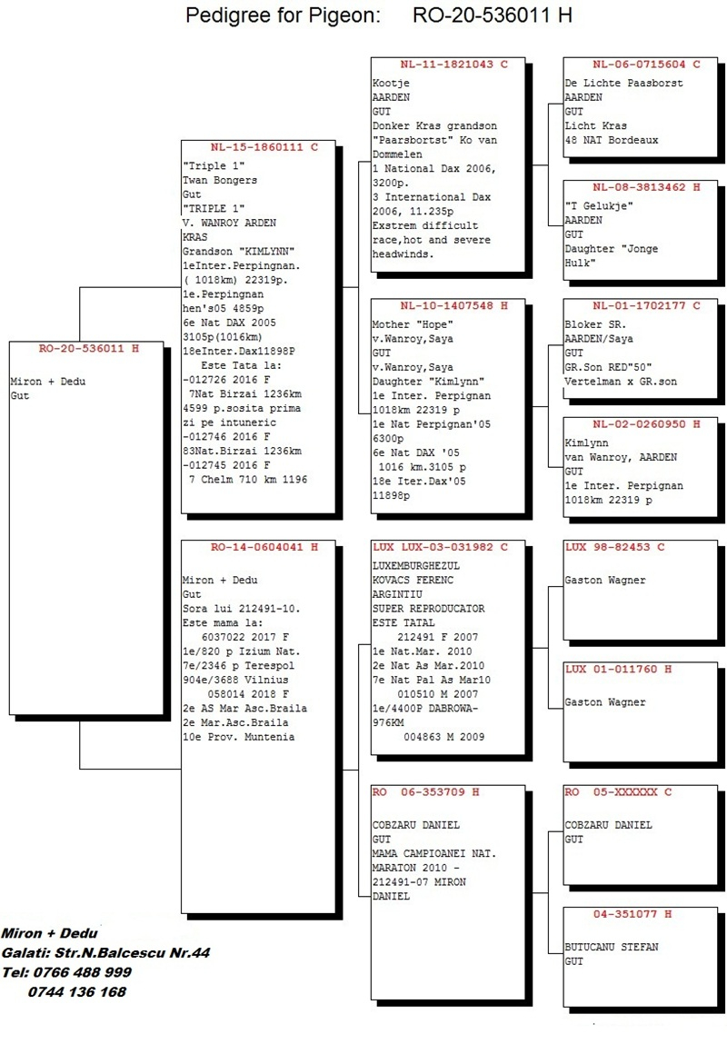 Mein Name ist Plugaru Andrei und ich wohne in Vaslui, Kreis Vaslui. Seit dem Jahr 2010 bin ich als Brieftaubenzüchter aktiv und Mitglied der Filiale Vaslui, dem Jahr, in dem auch die ersten Ergebnisse erschienen (1. Platz As Weitstrecke, 3. Platz Weitstrecke, 4. Platz Große Weitstrecke, 21. Platz Marathon, und im Jahr 2012 erreichte dieselbe Taube den 2. Platz Kreis Vaslui Berlin National 1217 km). Ich bin leidenschaftlicher Züchter von Weitstrecken-, Marathon- und Extrem-Marathon-Tauben, eine Tätigkeit, die mir im Laufe der Zeit zahlreiche Zufriedenheit und persönliche Erfolge gebracht hat und es mir ermöglicht hat, mich jedes Jahr mindestens unter den Top 3 auf Kreisebene zu halten. Anfangs konzentrierte ich mich auf Weitstreckenflüge, später richtete ich meine Selektion und Zucht auf Marathon und Extrem-Marathon aus und investierte in bewährte Blutlinien verschiedener Züchter aus Rumänien (Familia Henning, Miron Daniel, Butucanu Stefan, Cordeanu Vasile, Fildan Vlad, sowie aus dem Ausland. Nachfolgend präsentiere ich einige der im Jahr 2025 erzielten Ergebnisse: