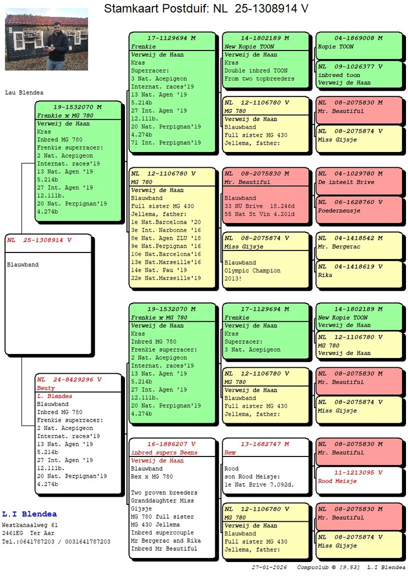 • zahlreiche weitere nationale und internationale Platzierungen bei den ZLU-Rennen Perpignan, Pau, Barcelona und Tarbes (St. Vincent), erzielt in hochkarätig besetzten Wettbewerben mit mehreren tausend teilnehmenden Tauben.