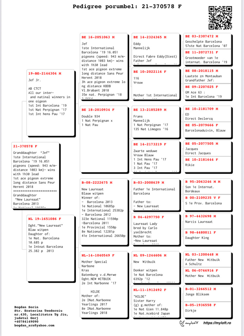 Herr Bogdan Sorin aus Târgu Jiu hebt sich ohne Zweifel als erstklassiger Züchter im Bereich der Langstrecken- und Maraton-Rennpferde hervor. In den letzten zwei Jahren ist er unbestreitbar zum führenden Investor in Rumänien für Tauben, die für Maraton-Wettbewerbe bestimmt sind, geworden. Diese Spitzenposition verschafft Herrn Sorin eine außergewöhnliche Gelegenheit, erneut den höchsten Platz auf dem Podium zu sichern, eine Auszeichnung, die er bereits in der Vergangenheit erreicht hat.