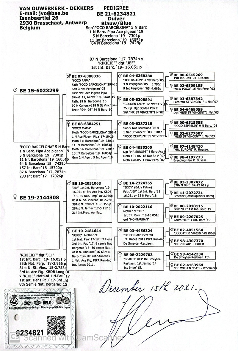 Zu seinen Anschaffungen gehören Nachkommen direkt von den renommiertesten Namen aus Rumänien sowie von der avischen Elite Europas. Seine Zucht umfasst Tauben von international bekannten Züchtern wie Gerard Schalwijk, Jelle Jellema, Kipp und Sohne, Cor de Heijde, Magirescu + Ojog + Dorneanu und vielen anderen. In dieser Auktion finden Sie Nachkommen aus Elite-Linien wie New Laureaat, Kleine Jade, Special One, Zwart Goud, Orange Oil, Barcelona King, Golden Glory und viele mehr.