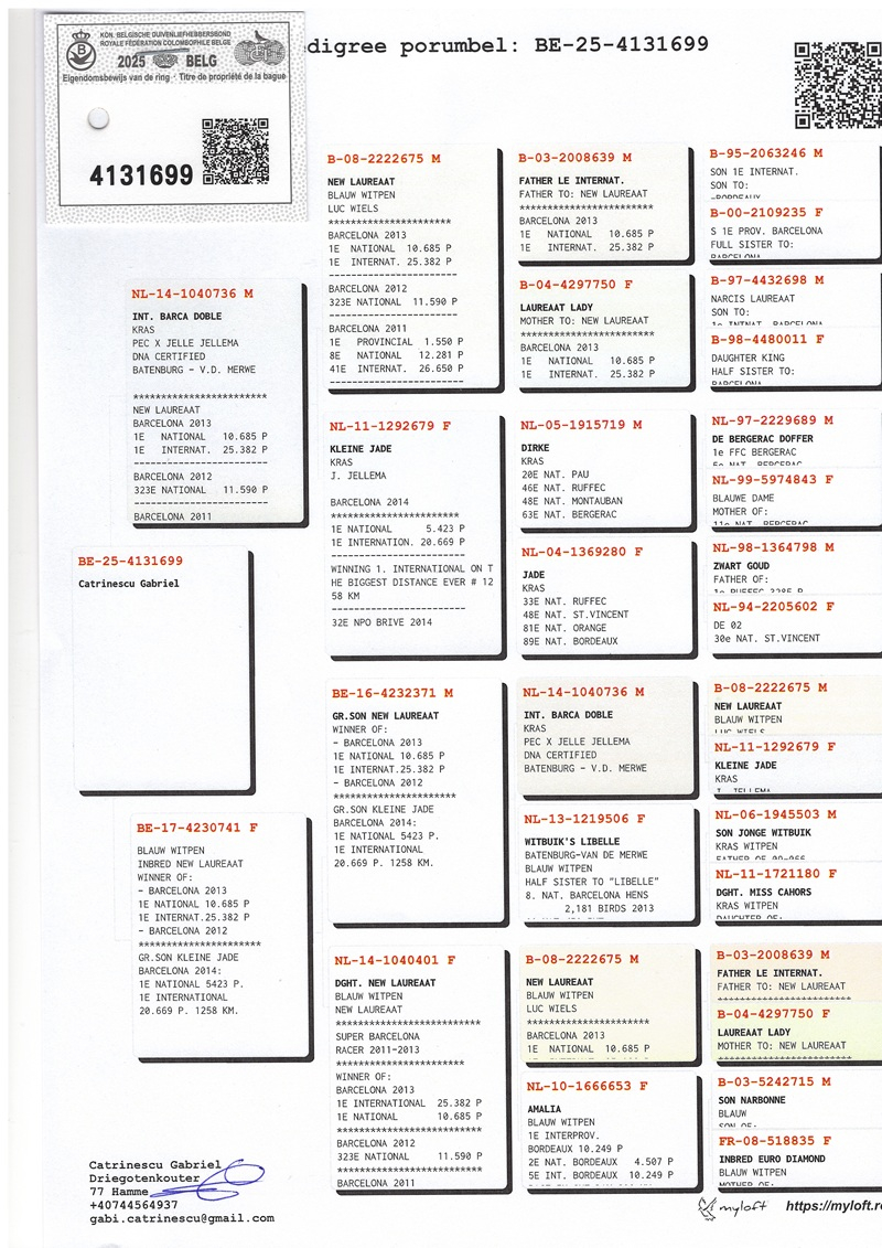 Der Wert der von Gabriel Catrinescu angebotenen Tauben geht weit über den Stammbaum hinaus. Er wird durch konstante nationale Erfolge bestätigt, darunter: