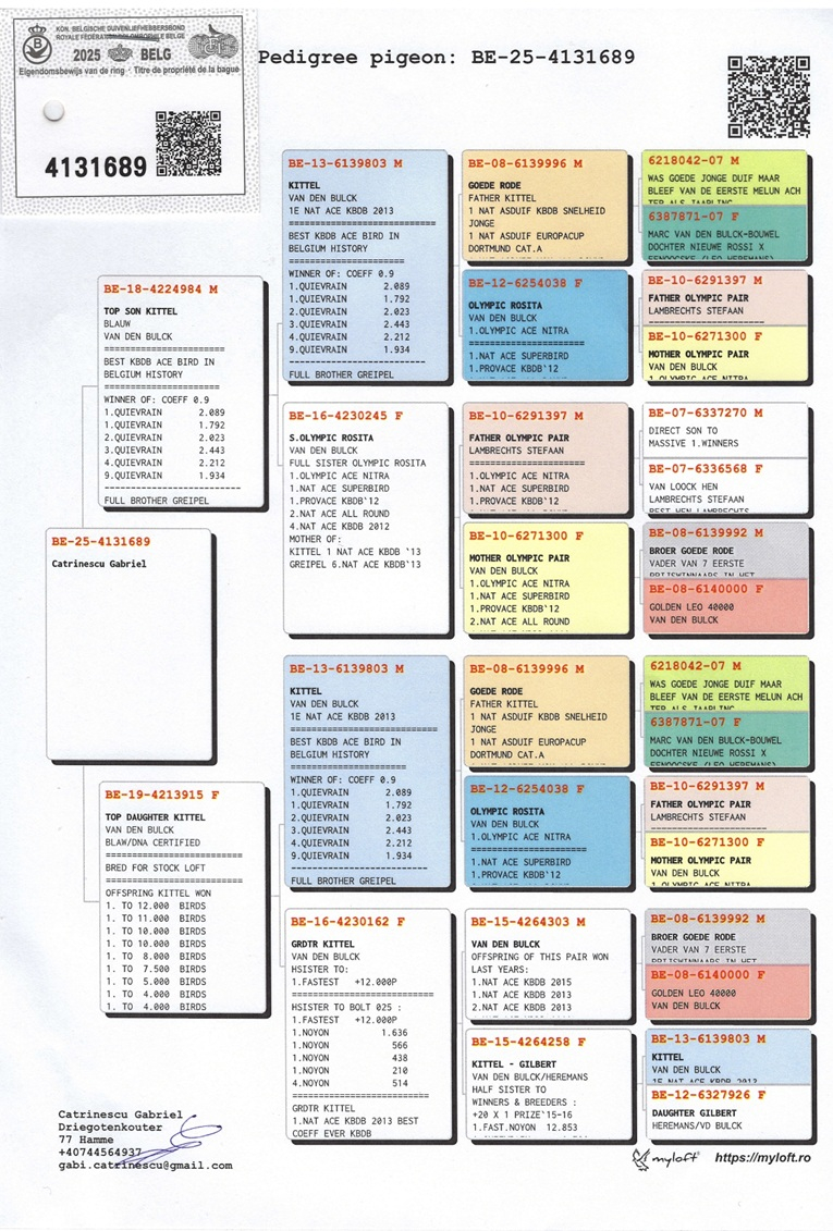 Gabriel Catrinescu bietet keine leeren Versprechen, sondern Kontinuität in Exzellenz. Für jene, die echte Qualität und nachgewiesene Leistung suchen, ist diese Auktion eine dezente, aber entschlossene Einladung zum Kern der modernen Brieftaubenzucht – dorthin, wo sich wahre Werte im Flug bestätigen.