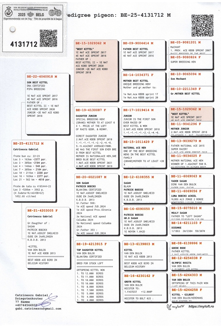 Gabriel Catrinescu bietet keine leeren Versprechen, sondern Kontinuität in Exzellenz. Für jene, die echte Qualität und nachgewiesene Leistung suchen, ist diese Auktion eine dezente, aber entschlossene Einladung zum Kern der modernen Brieftaubenzucht – dorthin, wo sich wahre Werte im Flug bestätigen.