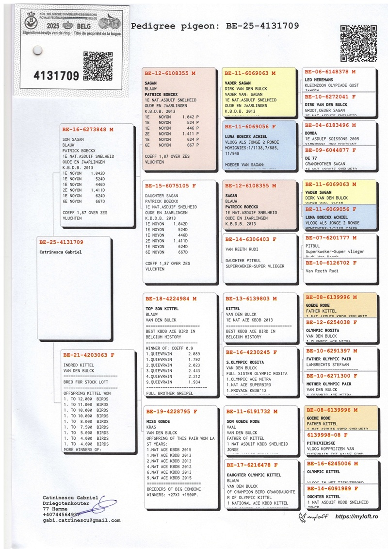 Gabriel Catrinescu bietet keine leeren Versprechen, sondern Kontinuität in Exzellenz. Für jene, die echte Qualität und nachgewiesene Leistung suchen, ist diese Auktion eine dezente, aber entschlossene Einladung zum Kern der modernen Brieftaubenzucht – dorthin, wo sich wahre Werte im Flug bestätigen.