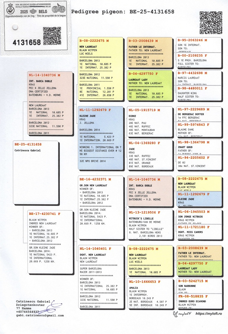 Der Wert der von Gabriel Catrinescu angebotenen Tauben geht weit über den Stammbaum hinaus. Er wird durch konstante nationale Erfolge bestätigt, darunter: